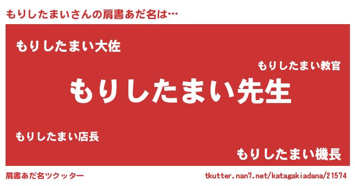 | ヒーロー風カッコイイあだ名 | 『ネオモリシタマイ』『仮面モリダー』 |