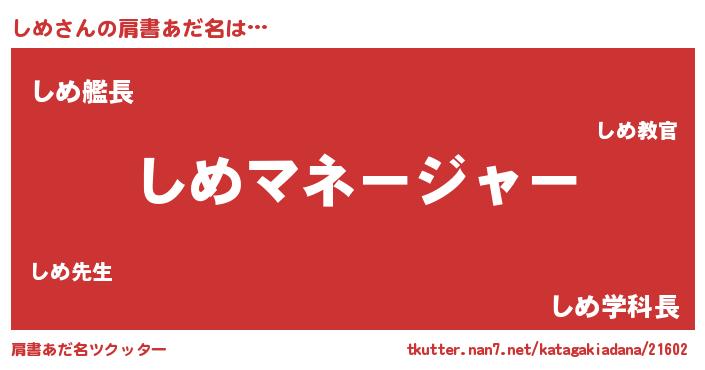 | 男性向けラノベタイトル風あだ名 | 『はたらくしめさま!』『緋弾のシメ』 |