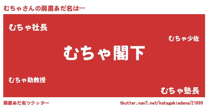 | 男性向けラノベタイトル風あだ名 | 『Re:むちゃから始める異世界生活』 |