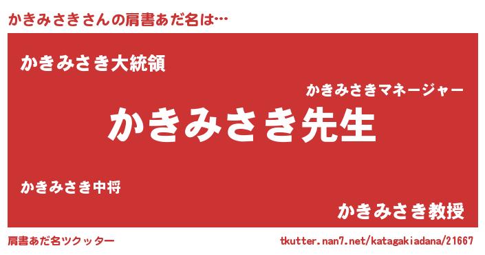 | 男性向けラノベタイトル風あだ名 | 『かきみさきという概念が存在しない退屈な世界 』 |