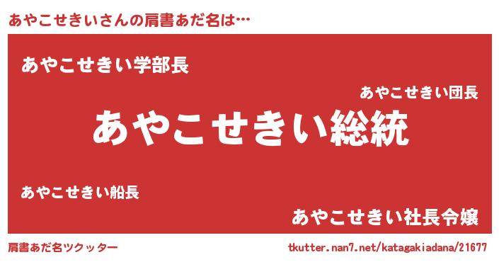| 意味不明あだ名 | 『自称あやこせきい』 |