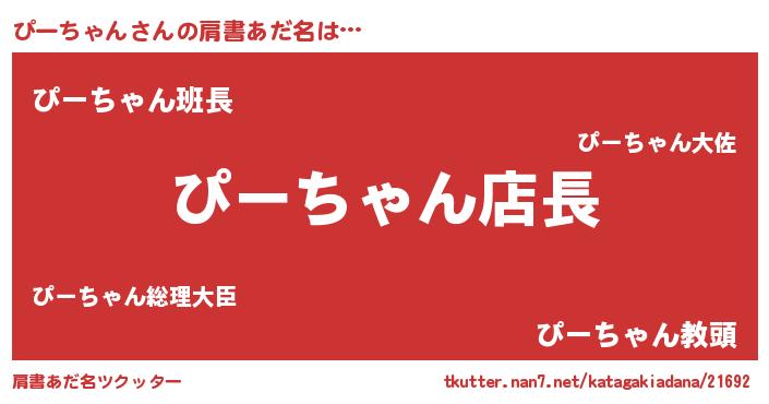 | ヘコむあだ名 | 『ぴーにゅー』『ぴーっ子』 |