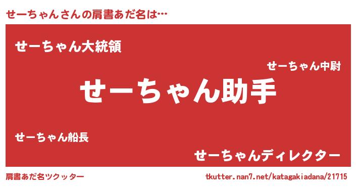| ヒーロー風カッコイイあだ名 | 『慈愛の使者せーちゃん』『炎刃騎士セー』 |
