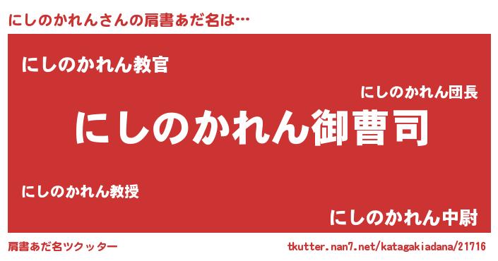 | 胡散臭い通販商品みたいなあだ名 | 『モテモテ間違いなし霊験あらたかなお札…その名も「にしのかれん」』 |