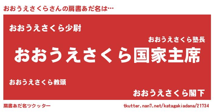 | 意味不明あだ名 | 『おおうえさくらフォーエバー』 |
