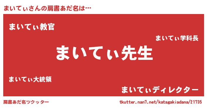 | ヘコむあだ名 | 『まいてぃ(笑)』『つくし』『まいを』 |