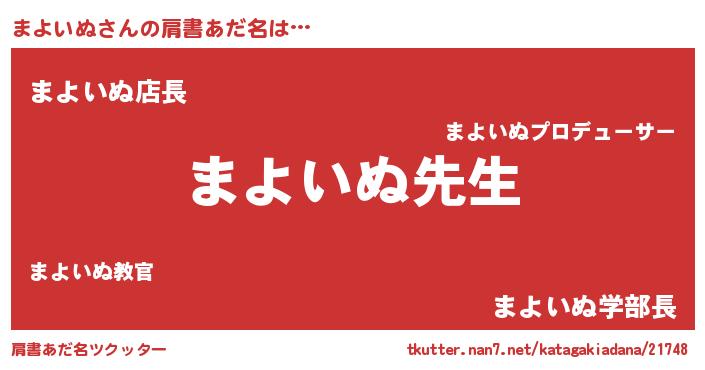 | ヘコむあだ名 | 『まよいぬ(小並感)』『まよにゅー』 |