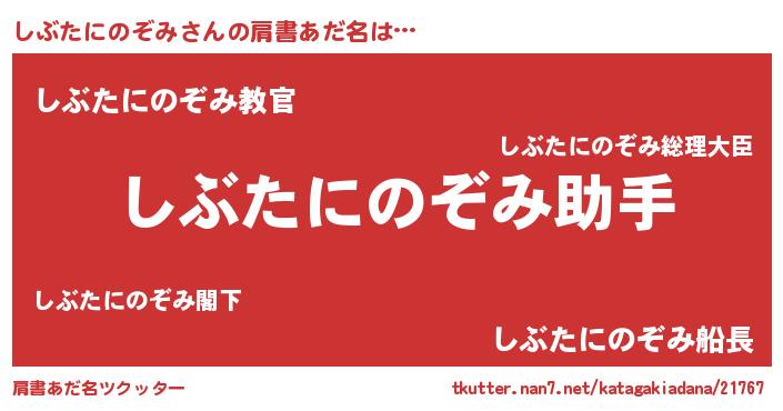 | 男性向けラノベタイトル風あだ名 | 『ノーゲーム・ノーシブタニノゾミ』 |