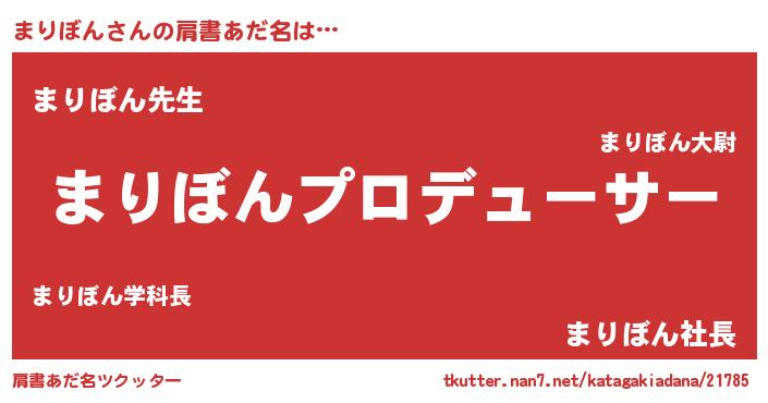 | ヘコむあだ名 | 『まりぼん(震え声)』『まりにー』 |