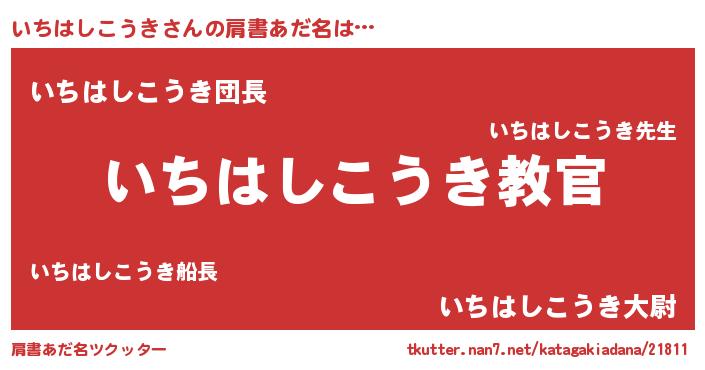 | 男性向けラノベタイトル風あだ名 | 『この素晴らしい世界にいちはしこうきを!』 |