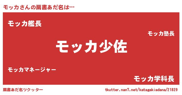 | 男性向けラノベタイトル風あだ名 | 『転生したらモッカだった件』 |