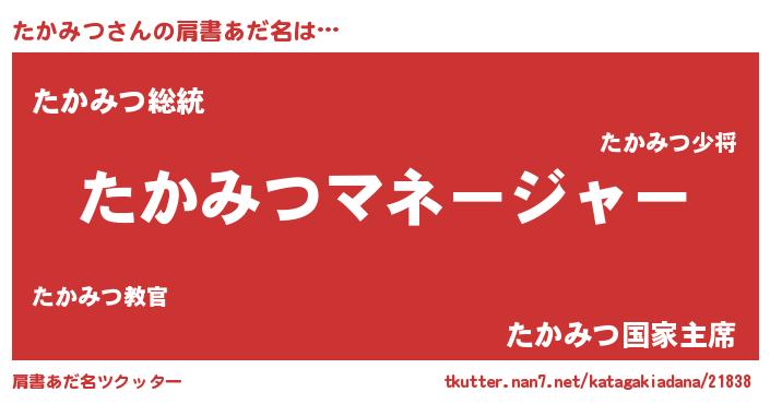 | 意味不明あだ名 | 『自称たかみつ』『たかみつフォーエバー』 |