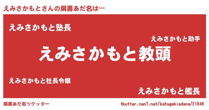 男性向けラノベタイトル風あだ名 | 『えみさかもとという概念が存在しない退屈な世界 』 |