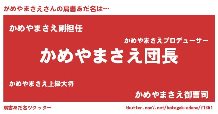 | 意味不明あだ名 | 『とにかく怪しいかめやまさえ』 |