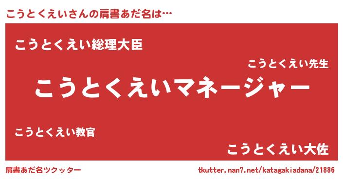 | 欧米人風あだ名 | 『アンジェラ・こうとくえい』 |