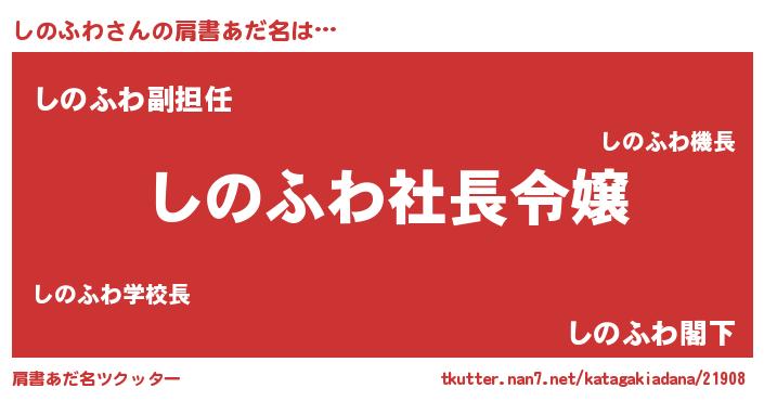 | 男性向けラノベタイトル風あだ名 | 『しのふわの憂鬱』 |