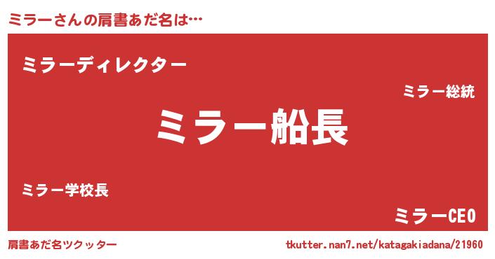 | 意味不明あだ名 | 『ペロリンミラー』『自称ミラー』 |