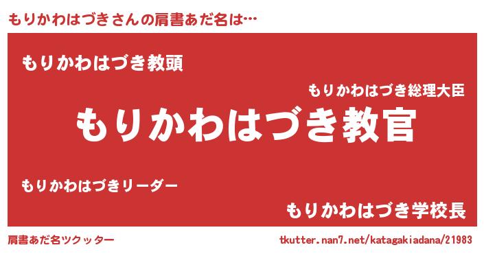 | 男性向けラノベタイトル風あだ名 | 『この素晴らしい世界にもりかわはづきを!』 |