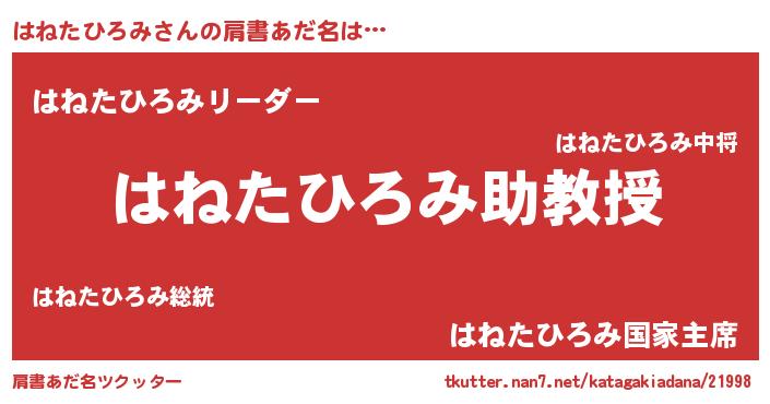 | 男性向けラノベタイトル風あだ名 | 『ノーゲーム・ノーハネタヒロミ』 |