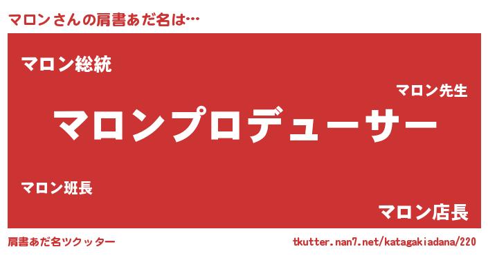 | 欧米人風あだ名 | 『アンジェラ・マロン』『マイケルマロン』 |