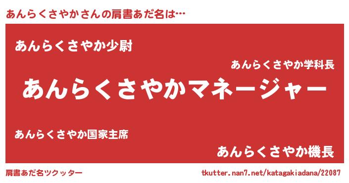 | 欧米人風あだ名 | 『アンジェラ・あんらくさやか』 |