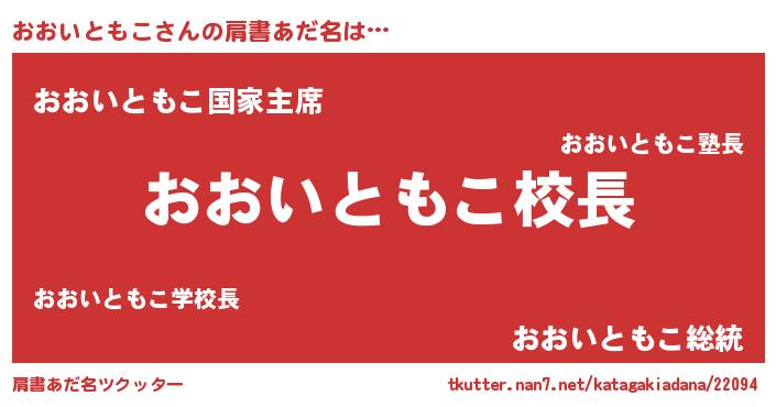 | 男性向けラノベタイトル風あだ名 | 『誰もが恐れるあのおおいともこが、ぼくの専属メイドになるようです。』 |