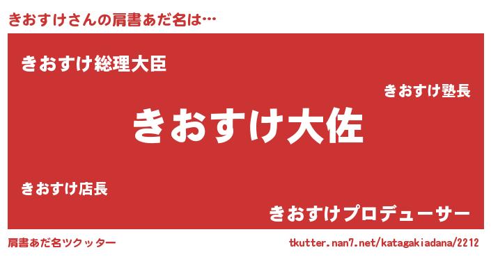 | 男性向けラノベタイトル風あだ名 | 『きおすけ~年齢イコール彼女いない歴の魔法使い~』 |