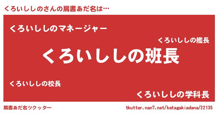 | ヒーロー風カッコイイあだ名 | 『炎刃騎士クロ』『愛の使者くろいししの』 |