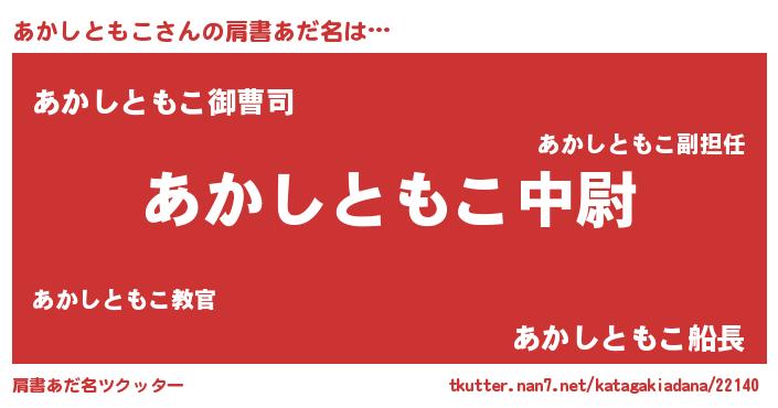 | 男性向けラノベタイトル風あだ名 | 『転生したらあかしともこだった件』 |