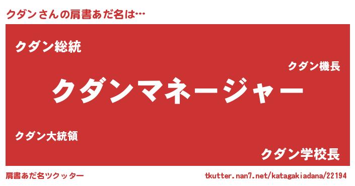 | ヒーロー風カッコイイあだ名 | 『究極戦士クダン』『正義の使者クダン』 |