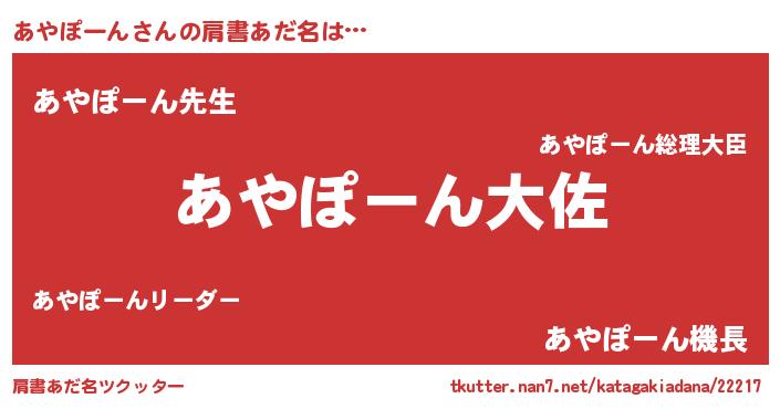 | 胡散臭い通販商品みたいなあだ名 | 『来世でも幸せになれる招き猫…その名も「あやぽーん」』 |