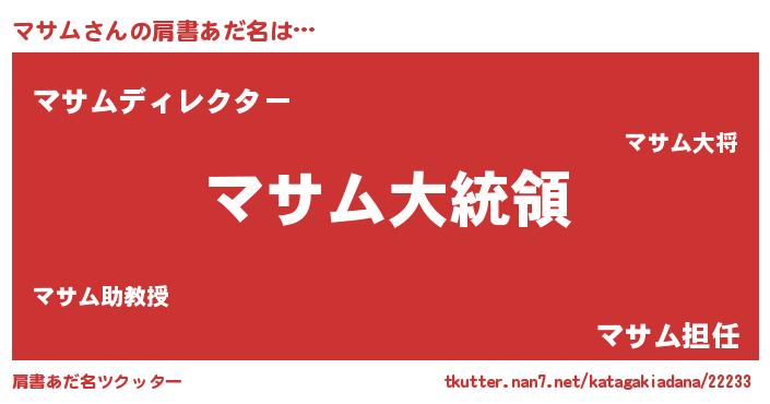 | 意味不明あだ名 | 『マサムフォーエバー』『永久保存マサム』 |