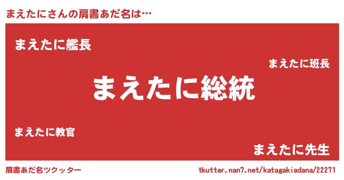 | 意味不明あだ名 | 『自称まえたに』『永久保存まえたに』 |