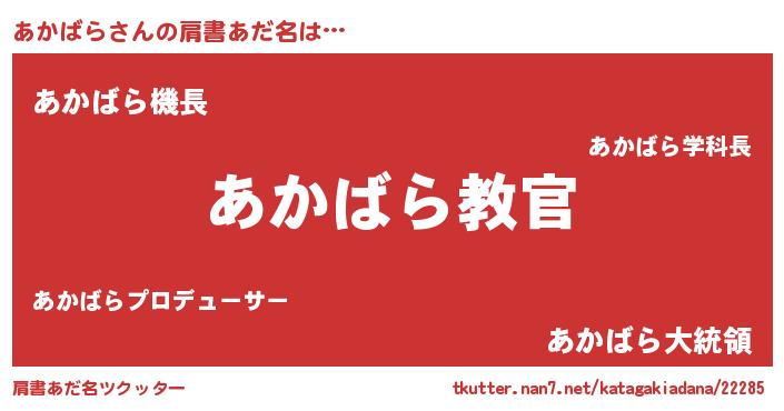 | 男性向けラノベタイトル風あだ名 | 『この素晴らしい世界にあかばらを!』 |
