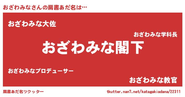 | 欧米人風あだ名 | 『ケンブリッジおざわみな』 |