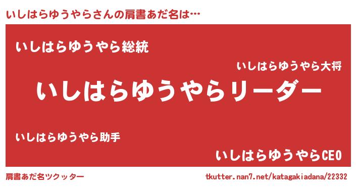 | 意味不明あだ名 | 『とにかく怪しいいしはらゆうやら』 |