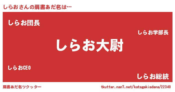 | 男性向けラノベタイトル風あだ名 | 『シラオスレイヤー』『しらおの憂鬱』 |