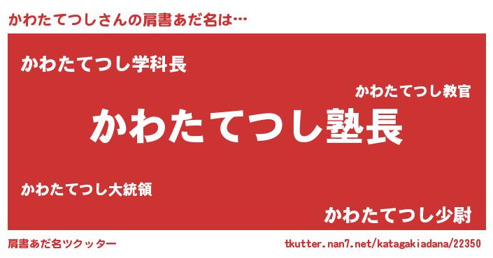 | 意味不明あだ名 | 『とにかく怪しいかわたてつし』 |