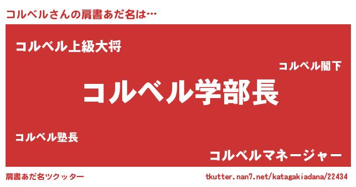 | 男性向けラノベタイトル風あだ名 | 『ノーゲーム・ノーコルベル』 |