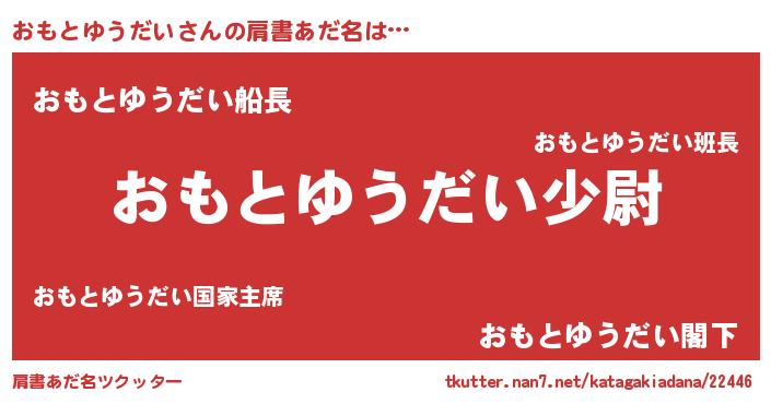 | ヒーロー風カッコイイあだ名 | 『最強戦士オモトユウダイ』 |