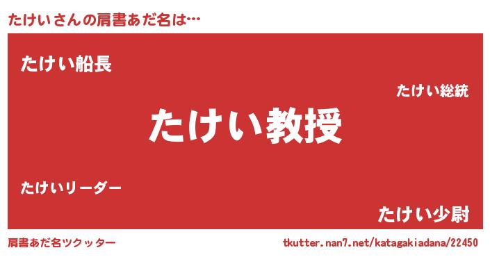 | ヘコむあだ名 | 『たけお』『豆乳』『たけにゅー』 |
