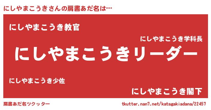 | 意味不明あだ名 | 『とにかく怪しいにしやまこうき』 |