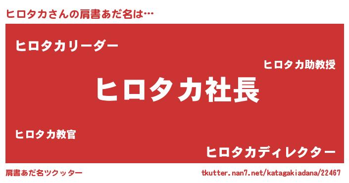 | ヒーロー風カッコイイあだ名 | 『スーパーヒロタカ』『黄金騎士ヒロ』 |