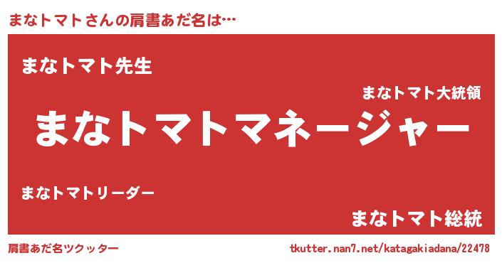 | 男性向けラノベタイトル風あだ名 | 『はたらくまなトマトさま!』 |