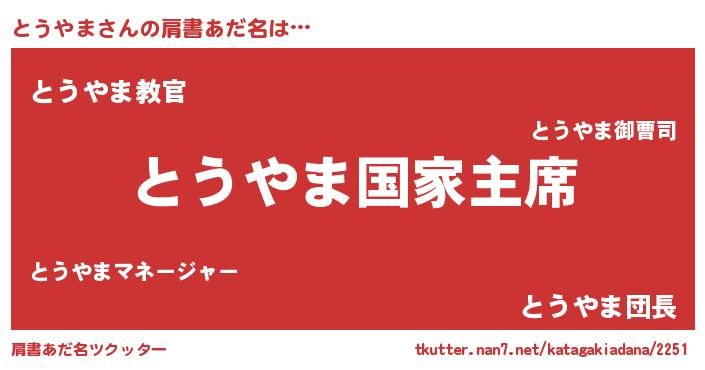 | ポケモン風あだ名 | 『トウヤダネ』『トーウイ』 |