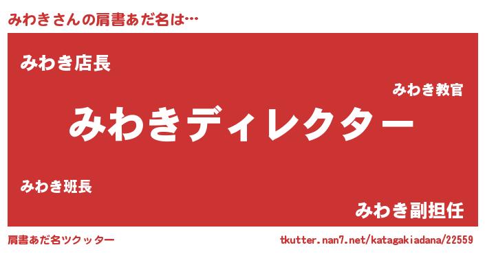| 男性向けラノベタイトル風あだ名 | 『はたらくみわきさま!』『みわきの憂鬱』 |