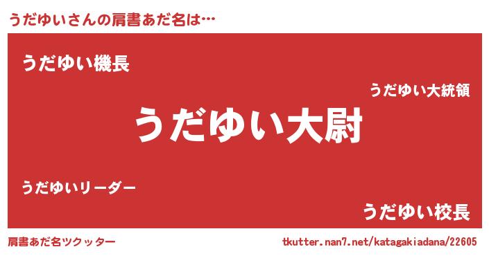 | ヘコむあだ名 | 『うだゆい(爆)』『牛乳』『うだっ子』 |
