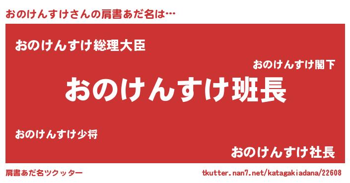 | 女子向けラノベタイトル風あだ名 | 『おのけんすけは平凡を望む』 |