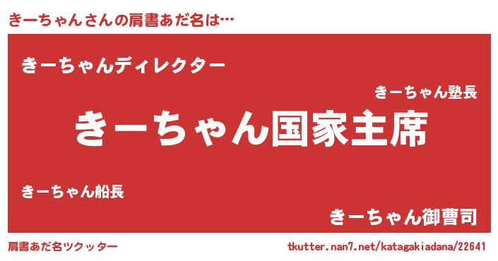| 男性向けラノベタイトル風あだ名 | 『やはりきーちゃんの青春ラブコメはまちがっている 』 |