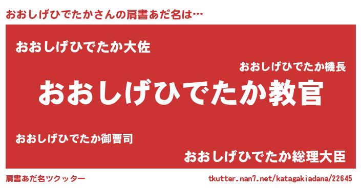 | 男性向けラノベタイトル風あだ名 | 『この素晴らしい世界におおしげひでたかを!』 |
